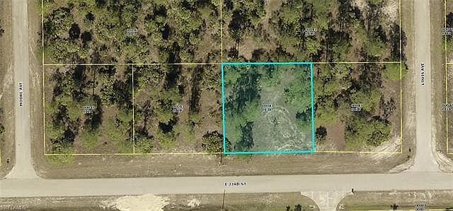 Building lot on a quiet street, well and septic will need to be installed. Horse farm across the street. 2 miles to Rt. 80 via Joel Blvd / 30 minutes to Fort Myers. Closest shopping is 10 minute drive to center of Lehigh Acres. The landscape consists of pine trees, palmettos and grass.