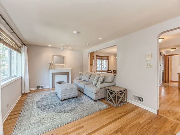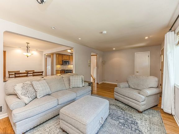 Great curb appeal as you pull up to this wonderfully cared for brick ranch. As you walk into the living room, you will appreciate a floorplan that is flooded with natural light and has hardwood floors throughout. Kitchen with quartz countertops & stainless steel appliances opens up to spacious dining room with lots of cabinet space. Two main level bedrooms share a nicely updated full bath. Full finished basement with additional living/dining area is perfect for entertaining - especially with dry bar that provides ample storage. Fully fenced in deep backyard and 2.5 car garage round out the practicality of this home. AC 2023, Furnace 2018, Roof 2018, newer replacement vinyl windows. Awesome location is walking distance to train station and so many shops, restaurants & bars.