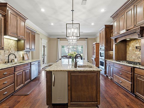 Stone accentsCentral vacuumStunning kitchenWood floorsWide trimCrown moldingExtra prep sink