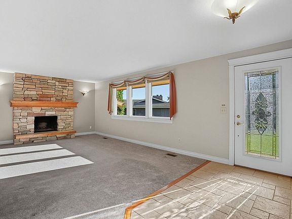 Fabulous turnkey rancher in South Hill neighborhood. Huge lot. House is spotless and nothing to do but move in. Light and bright. The updated kitchen has newer appliances, granite countertops with eat at bar and tile flooring. Main floor features 3 bedrooms and 2 baths. The primary bedroom features a lovely ensuite bath. Large back deck off kitchen is perfect for entertaining. It overlooks a huge and private backyard. Great mature trees. Front yard has newly installed sprinklers and was recently hydroseeded. It looks great and will continue to improve in near future. Basement is fully finished and features family room with fireplace, 2 bedrooms (1 lacks legal window), an additional office/storage room, laundry with walk out to back yard and bathroom. The furnace and hot water are updated high efficiency appliances. The house has also been updated with energy efficient vinyl windows.