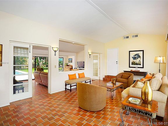 A big surprise in the Little Gables--a huge 14,382 SF lot w/3 Bedroom/3 Bath single family home with duplex zoning! Spacious rooms: family room (14x 20) living room (13x24) w/high vaulted ceiling (original open beam ceilings can be restored) and incredible natural light, foyer entrance, 3 nicely sized bedrooms, two w/ en-suite baths, updated kitchen and guest bath, formal dining room, laundry. Partial impact glass. Original oaks floors. Fabulous pool and a yard with room for a boat(s), play area, an addition, you name it! While the floor plan functions perfectly as a single family home, the property is well suited for a multigenerational home if redeveloped as a duplex. Some similar properties in the area have been redeveloped as townhouses. One block from the Gables.
