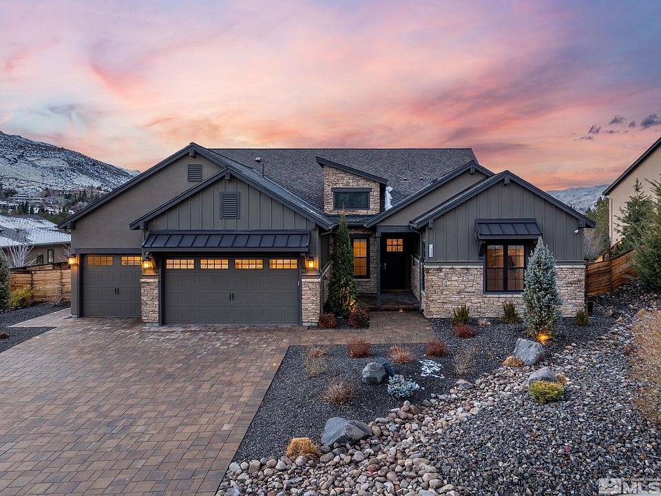 Check out the property website for a video, more photos and floor plan. Welcome to Pine Bluff, a semi-custom luxury community nestled in the heart of Caughlin Ranch. Surrounded by the majestic Sierra Mountains, this neighborhood epitomizes elegance, comfort, and a vibrant outdoor lifestyle. This exceptional 4-bedroom, 4.5-bathroom home is a masterpiece of design and functionality., Thoughtfully crafted with high ceilings, rich wood flooring, and a seamless open-concept layout, every detail invites sophistication. The gourmet kitchen serves as the heart of the home, featuring a massive island, sleek countertops, high-end appliances, and a butler’s pantry—a chef’s dream. The main-level primary suite is a private retreat, boasting a spa-like bathroom with dual vanities, and a designer shower. Each additional bedroom offers en-suite baths for comfort and privacy. The lower level is designed for versatility, including a spacious recreation room, a mudroom, and a secondary laundry room. Elevate your living experience with remote-controlled sun shades, and a newly designed backyard oasis valued at nearly $300,000. The outdoor space is perfect for entertaining or unwinding in style, complete with a covered patio and deck, an outdoor kitchen, a fireplace, a hot tub, and a freestanding fountain. The property does include a working elevator, that can be removed should the buyer not want it. Pine Bluff is not just a home—it’s a lifestyle. Enjoy access to 24 miles of scenic walking trails, quick proximity to Downtown Reno’s lively dining and shopping scene, and endless adventures in the nearby Sierra Mountains. This home offers the perfect combination of luxury, modern convenience, and a community designed for living life to the fullest.