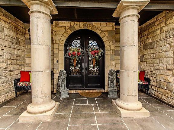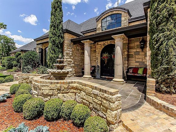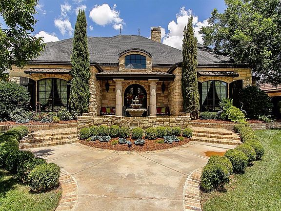 Timeless luxury with attention to detail begins with the beautifully landscaped yard drawing you through the arched front doors into the grand entry with brick barrel ceiling. Arched cased openings lead to the living area with its natural stone fireplace & coffered wood grid ceiling. The chef's kitchen offers rich wood cabinetry, stone farm sink, Monogram refrigerator/freezer w/custom panels, 6 burner gas range w/tile trimmed vent hood. The spacious master bedroom includes a custom bookcase, patterned carpet, & magnificent tray ceiling w/recessed TV. The master bath has separate vanities, oversized shower, jetted tub, fireplace, recessed TV, & fantastic closet! The back yard will take your breath away with its saltwater pool, full outdoor kitchen, fireplace & multi area seating - perfect for entertaining! Every inch of this home is a showplace, it's no wonder that it won five Parade Home awards. Custom cabinetry, spectacular ceilings and beauty abound. Gracious elegance at its best!