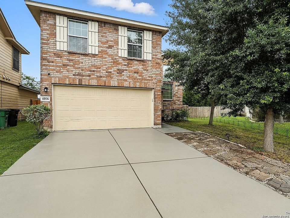 Discover this beautifully maintained 2-story brick home featuring 3 spacious bedrooms and 2.5 bathrooms, located inside Loop 1604. Built in 2014 and thoughtfully upgraded over the years, this home offers both modern comfort and timeless appeal. Step inside to an inviting open-concept layout that seamlessly connects the kitchen, dining, and living areas-perfect for everyday living and entertaining. The lower level boasts durable and stylish laminate flooring throughout, while a versatile flex space is ideal for a home office. Each of the three generously sized bedrooms includes its own walk-in closet, ensuring ample storage and privacy for all. Outside, enjoy the serene backyard with an extended patio surrounded by mature trees-your own private retreat for relaxing or hosting guests.