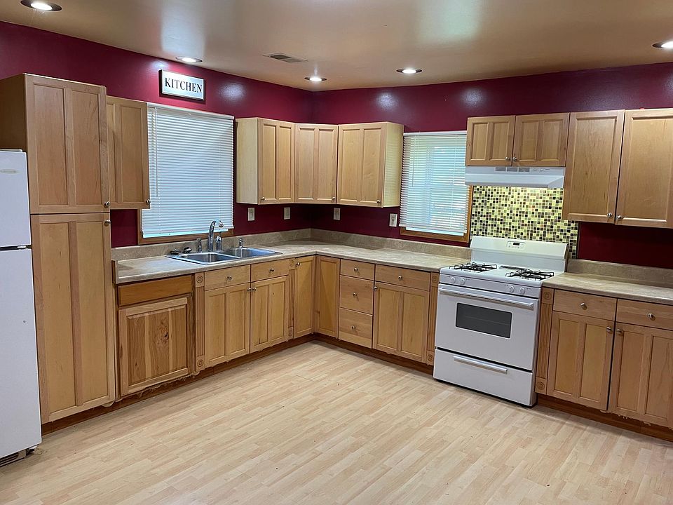 Wood laminate flooringFirst floor laundryUpdated kitchen