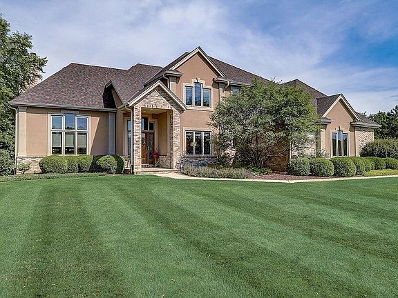 A Custom built home perfectly situated on 1.5 acre lot, backs up to 5+ acres of wooded common space with walking & hiking trails. Step inside to find custom-crafted millwork, a stunning, unique & open staircase, high vaulted ceilings, floor to ceiling stone fireplace with grand columns that tie in this home. The beautifully updated gourmet kitchen is a dream, w/loads of custom Bertch cabinets, granite counters, solid copper features, working island, Viking appliances and a large dinette area with beautiful views of the backyard. 1st floor provides practical work from home office or optional bedroom, laundry room and great room. All of this including a new roof, new mechanics, water softener, & radon. Enjoy entertaining in the backyard w/firepit, large stamped patio, walk paths & wildlife.