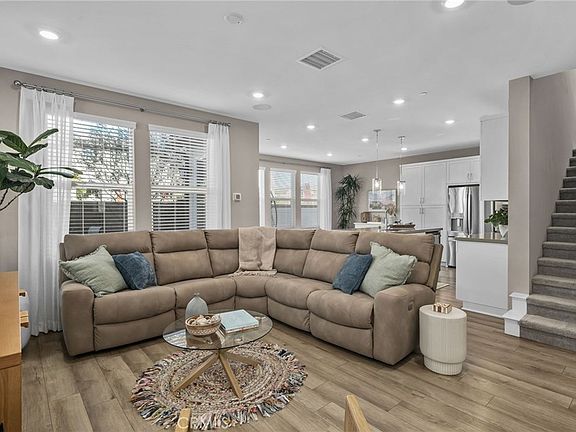 The open floor plan is perfect for entertaining, with a beautifully designed kitchen that features a large center island with additional seating, custom pendant lighting, stainless steel appliances, and plenty of cabinet space to meet all your storage needs.
