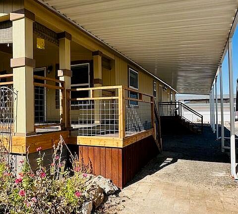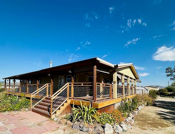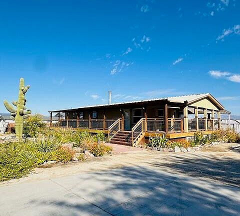 Step into comfort, style, and modern convenience with this beautifully maintained 2022 manufactured home. Offering 3 spacious bedrooms and 2 bathrooms, this home features luxurious granite countertops in both the kitchen and bathrooms, complemented by fresh interior paint and brand-new carpet for a like-new feel throughout. The kitchen shines with its granite surfaces and open layout, while the living spaces flow effortlessly to the outdoors. Enjoy year-round relaxation on the wrap-around Trex deck, complete with ceiling fans to keep you cool on warm desert days.The exterior is a true desert oasis, boasting thoughtful hardscape that includes a majestic saguaro cactus, decorative desert rock accents, and a custom concrete decorative tile walkway that enhances curb appeal and character. The property features front and back roll gates, making pull-through access incredibly convenient for RVs, oversized trailers, or additional vehicles.