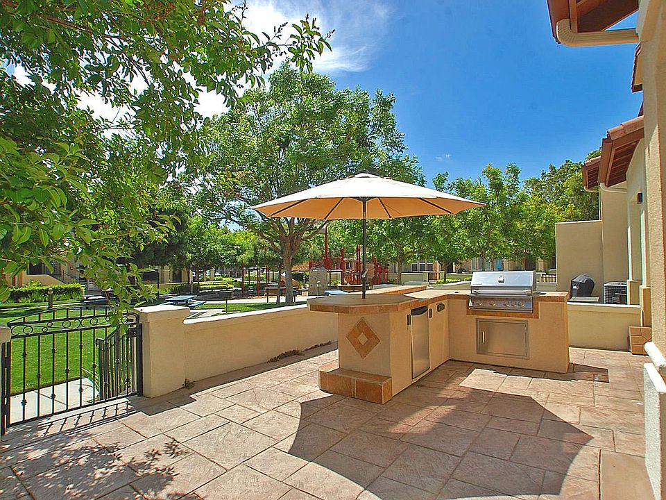 BONUS! $500 discount on 1st month rent with lease start date of 3/1/26 or sooner. Stunning condo in the exclusive Harveston community! This three-story end unit condo in the Savannah development offers everything you could ask for. End unit for added privacy, wood like plank flooring, ceiling fans, cozy fireplace with custom mantel, granite counters, stainless steel appliances, light and bright with tons of windows, shutters, 2-car garage with direct access to home, wired for surround sound, washer & dryer included, the 3 bedrooms are on the second level with a loft, PLUS a third-floor suite with its own full bathroom that could be used as a fourth bedroom. Entry courtyard with BBQ Island is great for outdoor living while watching kids play on playground. Garage is highly updated with epoxy flooring and tons of storage with upgraded built in cabinets and EV wall outlet. The elementary school and day care are conveniently located within the community. Harveston offers a 17-acre park, man-made lake, paddle boat rentals, fishing, picnic, concerts, lake house, pool, spa, pavilion and a 19 acre sports park. Available now!