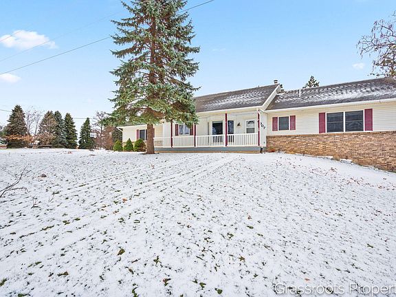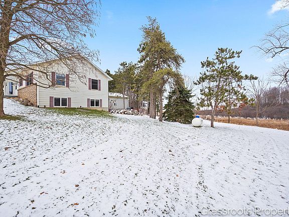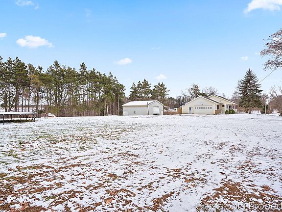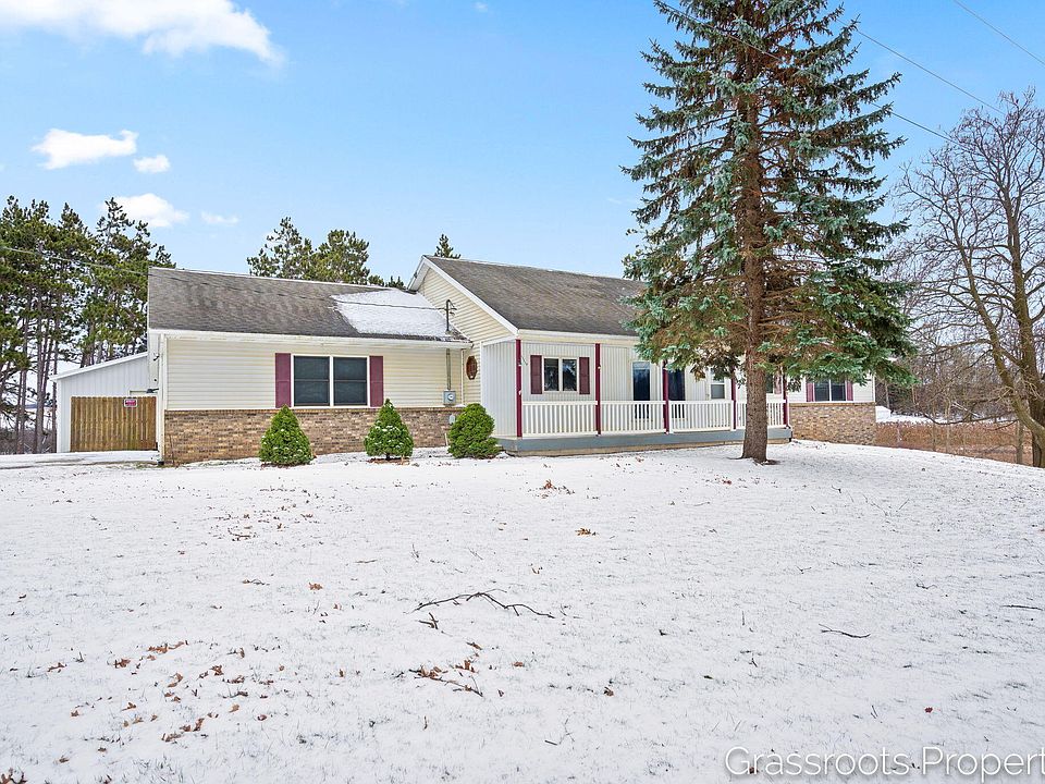 Discover peaceful country living on this stunning 10-acre property just minutes from Wayland and Middleville. This spacious 4-bedroom, 2.5-bath ranch offers over 2,700 finished square feet of comfortable living space. The main floor features an inviting open-concept layout with cathedral ceilings, a large living room, and a light-filled three-season room overlooking the serene property. The kitchen includes ample cabinetry and a generous dining area perfect for entertaining. The primary suite offers a private full bath, while two additional bedrooms and a half bath complete the main level. The finished walkout lower level provides a large family room, additional bedroom, full bath, and abundant storage. Enjoy outdoor living on the front porch, spacious back deck, or lower patio surrounded by mature trees and wildlife. This property also includes an attached 2.5-stall garage and a 30x40 pole barn with concrete floors, electric, and 12-ft sidewalls. Come take a look today!