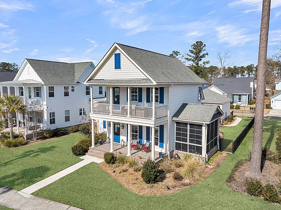 Experience Luxury Lowcountry Living at Its Finest. Welcome to The Landing at Poplar Grove, where timeless elegance meets modern comfort in this coveted custom-built home. Situated on a rare pond-facing homesite, this property offers an unparalleled outdoor living experience with magnificent water views from double front porches, a side all-seasons Carolina room, an oversized pergola-covered patio, and a spacious fenced backyard perfect for entertaining or quiet relaxation.This four-bedroom, three-bathroom gem exudes sophistication from the moment you step inside. Ten-foot ceilings, hickory hardwood flooring, and upgraded trim set the tone for the high-quality finishes throughout.The open-concept first floor is both functional and stylish, featuring a living room with wainscoting, and a natural gas fireplace that flows seamlessly into the side all-seasons room with serene pond views. The gourmet kitchen is a chef's dream, boasting a large center island, natural gas cooktop, and not one, but two pantries are perfect for all your culinary needs. Large windows fill the home with natural light, providing views of the pond and backyard. The first-floor primary suite is a retreat of its own, complete with a spa-inspired bathroom featuring a soaking tub, dual vanities, a frameless tiled shower, and a custom closet system with convenient pocket-door access to the laundry room. A second guest suite or office with an adjacent full bathroom is also located on the main floor. Upstairs, the charm continues with a loft area that opens to the second-story porch, perfect for enjoying sunsets and birdwatching over the pond. Two additional bedrooms with spacious closets share a beautifully designed guest bathroom with ample storage. A covered breezeway connects the home to a detached two-car garage, offering plenty of space for vehicles and storage. Poplar Grove is a highly sought-after community that combines natural beauty with unparalleled amenities. Residents enjoy access to a saltwater pool, a state-of-the-art fitness center, a marsh observation deck, a deep-water boat launch, and a community clubhouse hosting social events. Explore miles of walking trails through historic plantation land or launch your kayak from the outpost dock. Located just 12 miles from downtown Charleston, this serene sanctuary offers the perfect balance of peace and convenience, with shopping and dining close by. Imagine sipping your morning coffee sitting on your porch overlooking the water. Don't miss this rare opportunity to own a one-of-a-kind custom home in Poplar Grove. Schedule your private tour today and step into a lifestyle of unmatched elegance and tranquility!