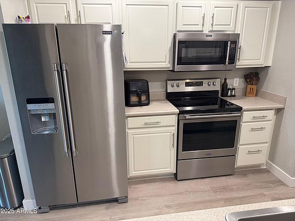 Beautiful Updated Home Near Desert Ridge/Scottsdale Border. Welcome to this charming 3 BR, 2 Bath home offering 1648 sq ft of comfortable living space on a quiet cul-de-sac. Built 1987 & thoughtfully undated, home features vaulted ceilings in the living room & oversized primary bedroom, creating an airy, open feeling. Primary suite accommodates a desk or sitting area. Recent upgrades: vinyl plank flooring 2023, Pella windows 2022, new A/C July 2025. Kitchen shines w/newer stainless-steel appliances 2020, making it fully move-in ready. Bathrooms feature new vanities w/modern touch. Enjoy outdoor living on 8000sq ft lot, lush grass, automatic sprinklers, plus a 7'X7' tool shed. Two car garage w/electric car charger. Near Desert Ridge, Mayo Clinic w/easy freeway access. PV Schools.
