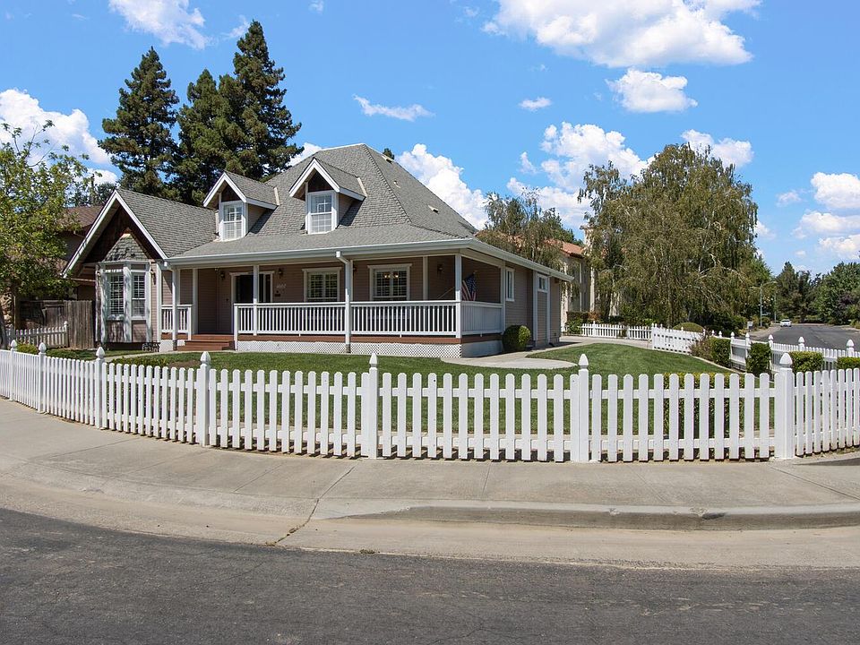 Willowbank location on a wonderful, short cul-de-sac of beautiful homes and great neighbors. This corner lot offers a large wrap around yard in front and sides, and a wrap around porch, side entry to the 2-car garage. The home has a unique floor plan with The master bedroom/bathroom located on the first floor together with a second bedroom (currently set up as an office and does not have a closet) formal and informal dining, living room, kitchen, and laundry plus a common bathroom. Second floor includes two large bedrooms, one with a door exiting to rear stairs down to outside and a large hall bathroom bathroom. Many special features fill this extremely well maintained home. Low maintenance rear/side yards with cozy sitting and barbeque areas. New interior paint gives the new owner a blank slate to imagine how to use and change this home to meet their needs. City Certificate of Occupancy, Clear Pest Inspection and various other repairs have been completed for a move in ready home. And on top of all that, a very private location!