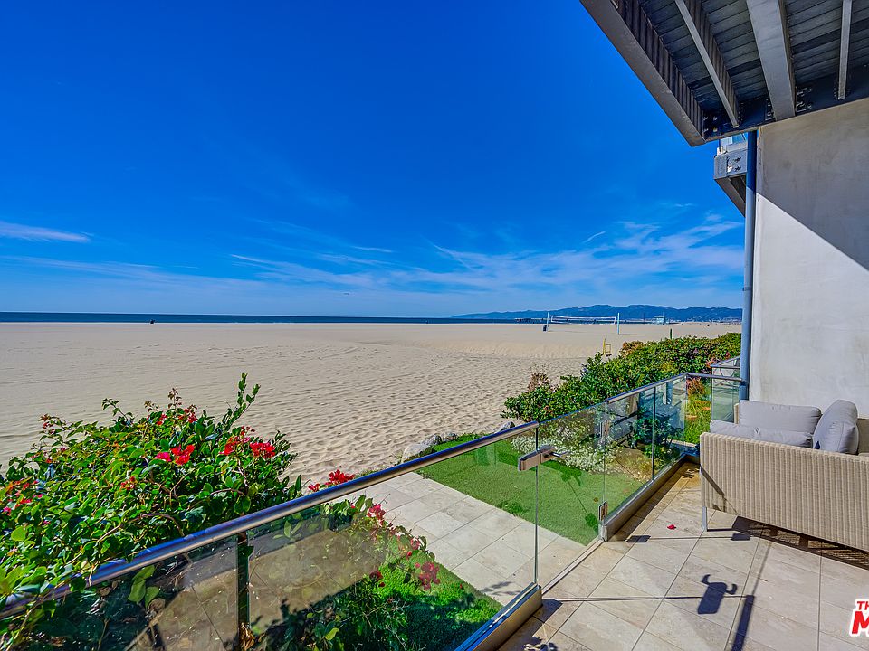 Gorgeous oceanfront home 2 bedrooms + Den + 2.5 baths with direct beach access and fully renovated with creme de la creme details throughout. Huge open kitchen with custom wooden cabinetry, granite counters, stainless appliances, and wine fridge. The Living room/dining/kitchen is all open with high ceilings, wood-burning fireplace, and large sliding glass doors that lead right out to the sand with remote-controlled shades. The den overlooks the kitchen living room and is a perfect place to make a home office or hang out space. The master suite has a walk-in closet and beautiful en suite bath with stone and very high end finishes. Amazing lifestyle, close to many shops, restaurants, the canals, Abbott Kinney, fisherman's wharf and the famous Venice Beach.