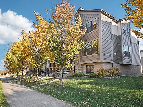 Welcome to this immaculate end unit townhome ideally situated in a prime Eagan location! This beautifully updated home offers a perfect blend of modern elegance and comfortable living. This end unit is sun-drenched in natural light from three sides of large windows accompanied by 9' ceilings that enhance the spacious ambiance. The open-concept main level showcases a welcoming living room with a cozy gas fireplace, a generous dining area, and an impressive great room, perfect for entertaining. The stunning kitchen boasts upgraded cabinetry, quartz countertops, subway tile backsplash, SS appliances, a breakfast bar, and a central island w/ additional seating, seamlessly connecting to the enlarged deck for outdoor enjoyment. A convenient updated main floor powder room adds to the functionality of the space.