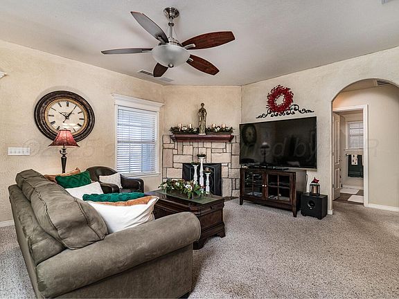 Charming 3-Bedroom, 2-Bath Home in Tradewinds Edition is a custom-built, one-owner home has been lovingly maintained and offers plenty of character and comfort. From the unique curb appeal and beautiful landscaping to the cozy front porch perfect for your morning coffee, every detail stands out. Inside, you'll find an inviting open-concept living area featuring arched entryways, custom cabinetry, and not one but two wood-burning fireplaces—one in the living room and another in the den! The home also includes spacious bedrooms, an isolated master suite, dedicated utility and a cozy den for extra living space. But the real fun happens out back! Enjoy the outdoor kitchen, gazebo, covered patio, workshop/storage area, and convenient rear-entry double garage. This home truly has it all!