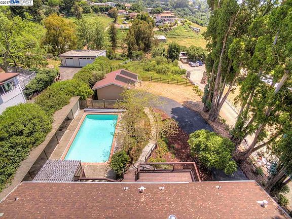 Welcome home to this wonderful country retreat above the city! Located in desirable Fairview of the Hayward Hills, this lovely custom-built, upgraded rancher has many features on every home seeker's wish list! To name a few, this home features three bright bedrooms, three full baths, sophisticated granite kitchen with classic cabinetry, beautiful beveled dual pane windows and sliders throughout. It also features a downstairs permitted studio with a full bath, mini kitchen, fireplace and separate entrance. Entertain with joy on the back deck, take a dip in your own solar heated pool or relax in the bubbling spa. A detached 3 car garage features abundant loft storage and workshop. One and possibly two horses are welcome on the 1.04 acre lot, surrounded by peaceful hillsides and city views!