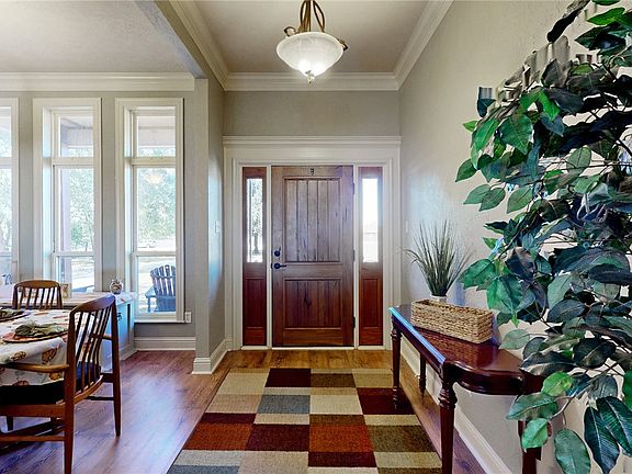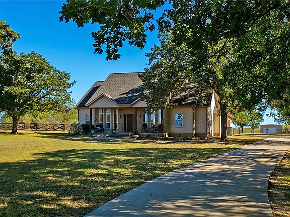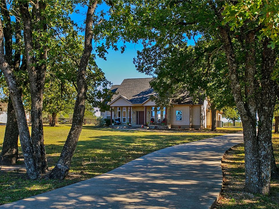 Nestled on 1.7 acres down a tree-lined drive, this beautiful one-story home combines country charm with smart design. Built with steel frame construction and accented with stone, brick, and cedar, it offers lasting quality and timeless appeal. With over 2,700 sq. ft. of living space, the home features 4 bedrooms, 3.5 bathrooms, plus a versatile 264 sf bonus room that can serve as an office, hobby space, or 5th bedroom. The open-concept floor plan centers around a welcoming living room with a cozy wood-burning fireplace and a wall of picture windows. The kitchen flows effortlessly into the main living area and features a natural stone range alcove, complemented by a large island with bar seating and a custom pantry featuring large drawers and lazy susan style organizers. The primary bedroom is complete with an ensuite bath which includes a tiled shower, garden tub, dual vanities, a spacious walk-in closet with built-ins and private access to the back patio. The secondary bedrooms have walk-in closets and share a Jack and Jill bath, while the mother-in-law suite includes its own bath and closet for comfort and privacy. Outdoors, you’ll find a spacious extended patio and an outdoor kitchen with a sink, propane grill, and smoker. At the back of the property sits a large workshop with electricity and a custom built patio, a perfect spot for a swing and firepit. Smart home features include a Wi-Fi thermostat and garage door opener. A new roof was installed in September of 2025.