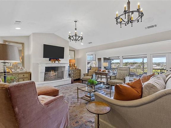 Luxury on Lake Travis! Beautifully remodeled home with all the fine finishes including antique pine wood & Travertine tile floors,quartzite kitchen counters w/antique brick backsplash,wolf appliances incld. steam oven & subzero refrig.,3 baths,2 living areas,two master suites, travertine fireplace,antique light fixtures, bonus work room or make into bedroom. Covered deck overlooks Lake Travis, RV garage with room for storage. Elegant landscape,easily maintained. Includes boat dock.
