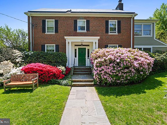Combining garden tranquility with urban convenience, 4008 Rosemary Street reflects feeling of elegant living, almost like a European village - walkable, connected, and refined. Located in the Town of Chevy Chase, this home is within easy reach of Friendship Heights Metro, neighborhood markets, and Washington DC's cultural heart, allowing a seamless balance of small-town charm and city sophistication. With five bedrooms, three-and-one-half baths, and approximately 4,800 square feet across four finished levels, this home blends classic charm with flexible space for both everyday living and entertaining. From the street, the curb appeal is undeniable -- manicured grounds, flowering shrubs, and a welcoming covered porch set the tone. Step inside to discover elegant rooms where natural light and craftsmanship take precedence over trends. The dining and living rooms open toward the gardens, evoking the ease of continental living, while the kitchen and family spaces invite connection and comfort. A center-hall foyer opens to a gracious living room with fireplace and built-ins, and a formal dining room framed by arched doorways and decorative molding. The eat-in kitchen is the heart of the home, featuring stainless steel appliances (including a double wall oven), a breakfast bar, and a sunny breakfast room. Sliding glass doors lead to a deck with built-in bench seating and pergola overhead. The family room? A total standout -- soaring ceilings, oversized windows, and glass doors to the patio flood the space with light. A tucked-away powder room completes the main level with style and convenience. Upstairs, the second level hosts a beautiful primary suite with walk-in closet, private full bath, and a sunny bonus space -- ideal as a sitting area or home office. Three additional bedrooms (including one with a private balcony) and a shared hall bath complete this floor. The third level features another bedroom, a bonus room, and attic storage -- ready to flex with your needs. The lower level offers even more options: a large recreation space or in-law suite with full bath, kitchenette/wet bar, laundry room, and a spacious storage room. Out back, you’ll find a detached two-car garage, a long private driveway, and lush garden space -- everything in place for quiet enjoyment or gathering with friends. Moments from Washington’s embassies, international schools, and cultural landmarks, 4008 Rosemary Street offers an ideal base for life in the Capital region. Its location in the Town of Chevy Chase provides a rare combination of neighborhood calm and urban access -- parks and cafés around the corner, Metro within easy reach, and the city’s world-class museums and theaters just beyond. B-CC High School, with the International Baccalaureate program, Silver Creek Middle, Chevy Chase Elementary schools serve the neighborhood.
