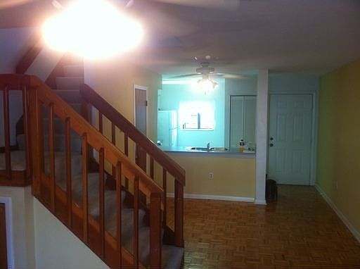 2/2.5 (Mill Run) Very nice townhouse in great location close to UF, restaurants, parks and shopping. Entry foyer leads to great room with parquet floors. Kitchen has nice white appliances, ceramic tiled floors and a dining and serving bar that separates it from the dining room. Large living room dining room combination with sliding glass doors off living room that leads to a nicely landscaped courtyard and open patio. Half bath downstairs with tiled floors and pedal stool sink. Both bedrooms are upstairs with bath between them. Back bedroom has sliding glass door that leads to a private balcony. Washer and dryer included