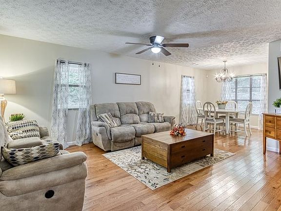 Don't miss this beautifully updated three bedroom, two and a half bathroom home with wrap-around front porch and seasonal lake views! Features a spacious main level with a bonus room/office, separate dining room, and laundry/mud room. Stainless steel appliances, newer: hardwood floors, roof, light fixtures, and driveway. Private, fenced back yard and low-maintenance vinyl siding. Space for RV and boat parking. Community has a private boat ramp! Conveniently located to the new Lanier Tech & YMCA.