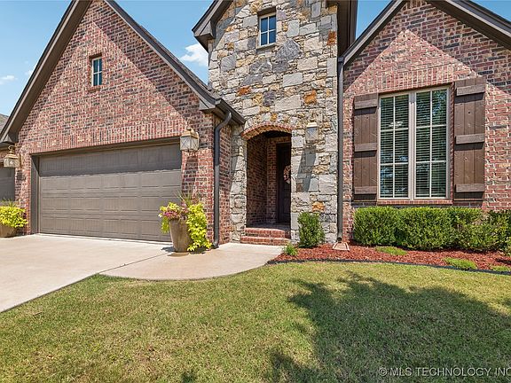 Don't miss this lovely, ALL one level home in Shadow Trails! It features an open floor plan with a true formal dining room. The eat-in kitchen has a large island with counter seating and a walk-in pantry. The living room is filled with natural light and has custom, built-in cabinetry and a stacked stone fireplace. Large primary suite with a beautiful bathroom and closet which opens to a very spacious laundry room. 3 additional bedrooms and a private office, all with walk-in closets. Plenty of storage throughout, plus an expansive attic with added flooring. Oversized 3 car garage. The backyard has mature trees lining the fence allowing for extra privacy. The spacious, covered patio comes with a natural gas grill, perfect for entertaining. The house is very energy efficient and meticulously maintained! New exterior paint. Enjoy the neighborhood pool, walking trails and fishing ponds. Bixby Schools!