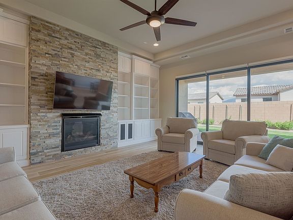 Price drop!!! Why wait for new construction when you have this beautiful home that has upgrades?? Fully landscaped backyard, reverse osmosis at the kitchen sink, water softener that is owned, custom shelves built-in the living room, ceiling fans in every room, custom blinds with light filtering or darkening, gym flooring and lighting added in the 3rd car garage. 5 bedrooms and 3 full bathrooms! Check out the 3 door slider in the living room to enjoy indoor outdoor living. The blinds on those windows are automatic. For you that like to decorate at the holidays; seller upgraded to a holiday package lighting so the plug in as at the roof line! Check out the upgrade features list!! Owned solar panels!!! OPEN HOUSE Sunday 9/11 12-2pm!!!