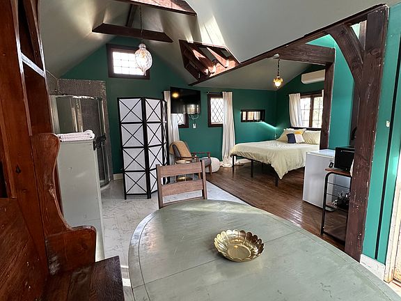 Kitchenette includes fridge/freezer; small cooktop; microwave; coffee machine. No full stove range/oven included.