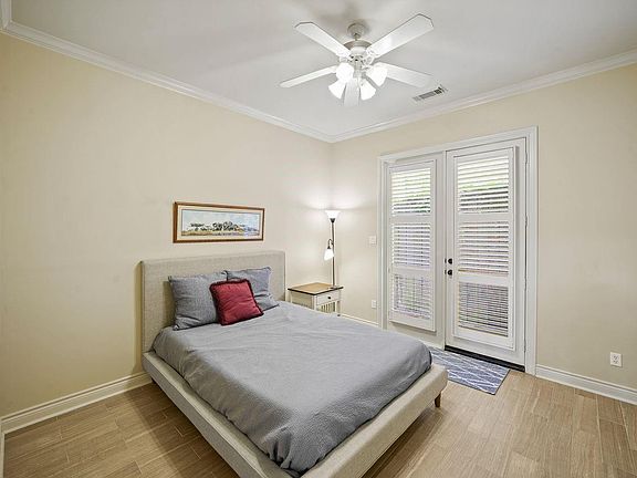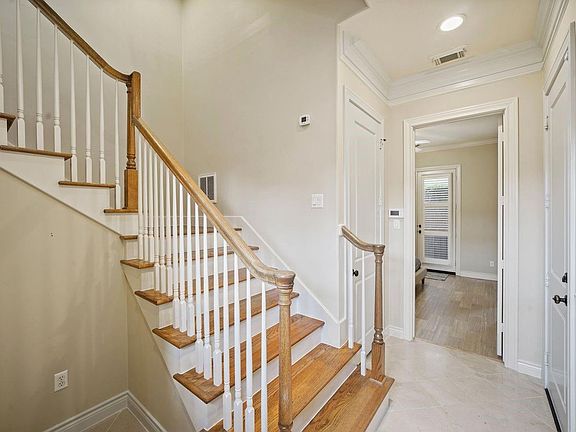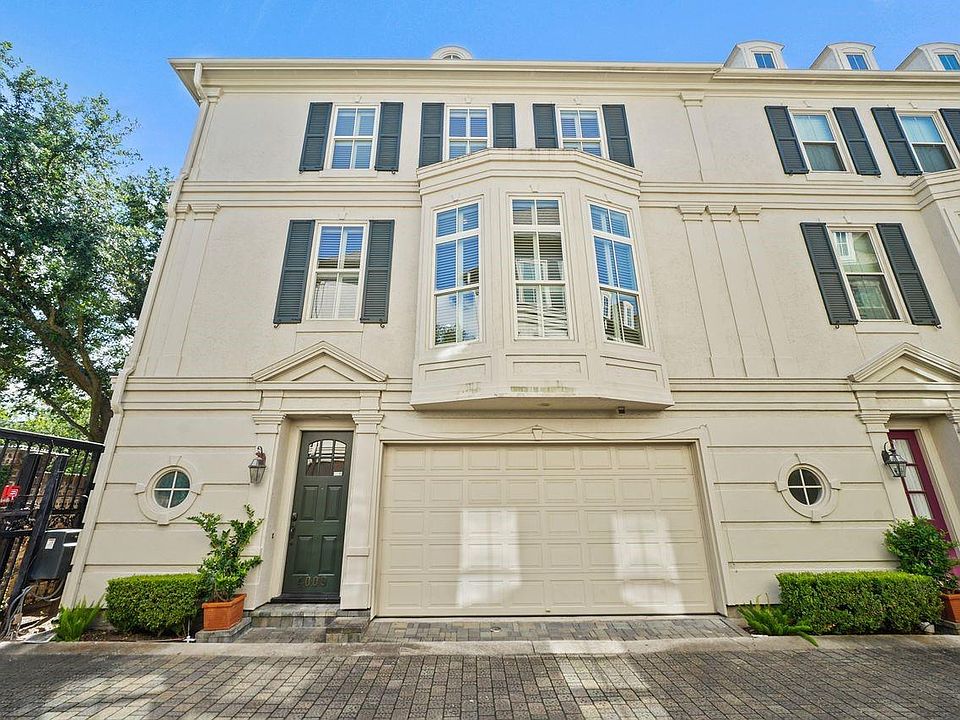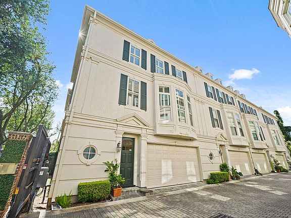 Beautiful Lovett Home in gated community. The home offers 3 bedrooms and 3 1/2 bathrooms. Beautiful wood floors flow throughout home. The first floor has a nice sized bedroom with full bath that could be a study. It has been updated with tile floors. The 2nd floor living and dining areas have high ceilings and a gas fireplace. The island kitchen opens to the family room and is complete with granite countertops, gas cook top, Bosch dishwasher, and lots of cabinet and counter space. The Formal dining is a great place to entertain your guests. The primary suite offers high ceilings with a luxurious ensuite that has his and her walk-in closets, Whirlpool tub, walk in shower and double sinks. The 3rd bedroom with full bath is also on the 3rd floor. The home has lots of closets for great storage. Beautiful Plantation shutters are throughout the home. A/C's replaced in 2024. Windows replaced with Windsor Next generation Vinyl 2022. Fabulous location minutes to Med Center.