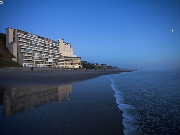 RARE opportunity to own a top floor oceanfront condo at the iconic Inn at Spanish Head! Desirable oversized unit, fully updated with two beds featuring sleek stainless steel appliances in a full kitchen and comes fully furnished with multiple owners lockers. Wake up to the sounds of the surf while taking in the 180 degree commanding views of the majestic Pacific Ocean from the outdoor deck or take the elevator down to direct access of 7 miles of sandy beaches. Located in a full-service oceanfront resort featuring a beachfront heated pool, sauna, jacuzzi, exercise center, game room, meeting spaces, valet parking and on-site rental management. Order room service or enjoy cocktails and fine dining at the award-winning Fathoms restaurant. This unit is a popular vacation rental but can also accommodate luxurious full time living. There is nothing else like this property on the entire Oregon Coast. Experience resort living with endless views of sunsets and the constant sound of soothing waves. Bless yourself with oceanfront perfection!