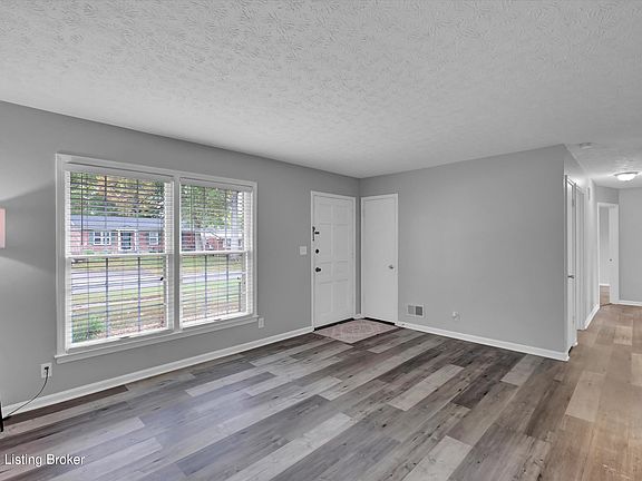 Welcome to this charming and move-in ready 3 bedroom, 1-bath brick ranch. This home features fresh updates throughout, including beautiful LVP flooring and neutral paint tones that create a warm, modern feel. The inviting living room opens to an eat-in kitchen that offers direct access to the private, fully fenced backyard—perfect for entertaining or relaxing outdoors. The primary bedroom includes private access to the full bath, with the potential to easily convert the layout into two full baths for added convenience and value. All appliances remain, including the washer and dryer, making this home truly turnkey. A detached oversized 2-car garage provides ample storage and workspace. Whether you're a first-time buyer, or looking to downsize, this home offers comfort, functionality, and flexibility in a great location close to shopping, dining, and I-265. Schedule your showing todaythis one won't last long!