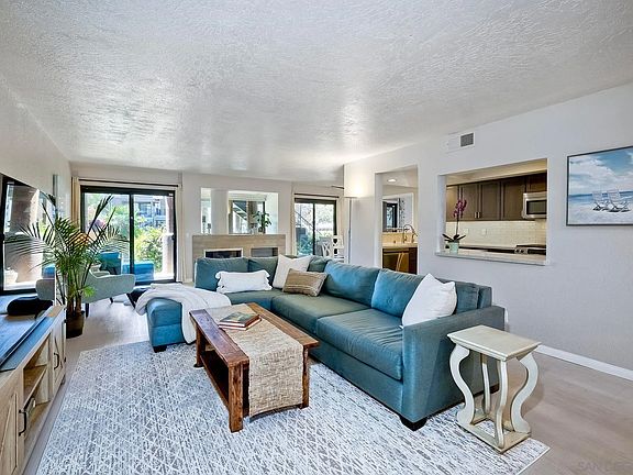Live by the beach WEST of the 5 in this fully renovated, immaculate, stunning, open concept condo, POOL-SIDE! This gorgeous remodel includes all new paint, flooring, cozy fireplace, quartz counters in the kitchen, custom cabinetry, brand new state of the art appliances, new bathrooms, incl AC. Gated community offers resort-style living surrounded in lush tropical landscape w/ pool/spa, BBQ area, water features & walking paths. Ride your beach cruiser or enjoy a quick walk to the beach, restaurants & downtown.