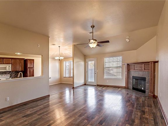 Home is gorgeous and move in ready! All neutral colors throughout, updated light fixtures, open kitchen with new granite countertops, ceramic tile in dining area, cherry stained cabinets, large living area with pretty fireplace, 2" faux wood blinds, nice size master suite, with his/hers sinks, walk in closet, all secondary beds are good size, backyard is HUGE with a storage shed for all lawn equipment. This is a beautiful home for a great price, come make this one yours today!