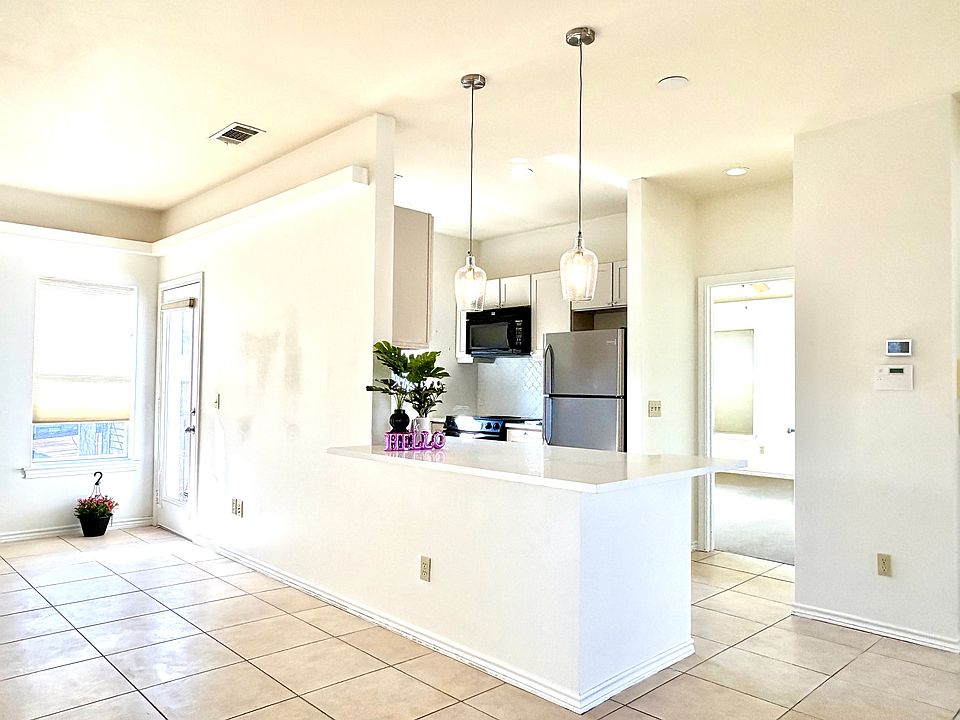 Spacious, bright & private. Fresh remodel with new bathroom, new quartz countertops, new carpet and paint. Private garage bay with direct access to apartment - no need to go outside to come & go. Large kitchen with bar-type seating. Open plan to living room with balcony access. Large main bedroom with walk-in closet. Tile floors, high ceilings, dedicated air conditioning unit and spacious feel. Owner/Landlord lives on site. No parking fee or trash fee. Super Convenient to Uptown, Love Field, Design District, Baylor Med, Children's, Parkland and Highland Park! Renter is responsible for electricity, internet and gas. Must carry renter's insurance. Combined Income must be 2.5x rent or higher.