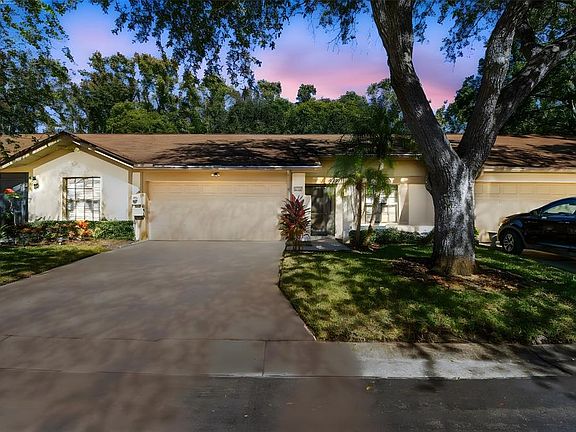 Welcome to The Clusters at Carrollwood Springs!! This highly sought after, gated and quaint community is a hidden gem with lakes, heated community pool, clubhouse, walking paths and SUPER LOW HOA; only $128/month! As you step inside this beautifully remodeled, one-story villa you will be immediately impressed by the open concept and quality of the home’s features and remodeled finishes. Featuring 2 bedrooms and 2 full baths, vaulted ceilings enhance the roomy and spacious feeling throughout. With stainless steel appliances and shaker wood cabinetry, this beautiful kitchen boasts a gorgeous backsplash that exudes luxury and an elevated flair and the breakfast bar and adjacent dining area offer plenty of room for you and guests to enjoy meals and entertainment at home! This terrific floorplan has split bedrooms and is enhanced by lofty ceilings and lovely flooring leading to a generously sized primary bedroom with an en-suite luxury style bath including a glass shower and high end fixtures. A large, walk-in closet with built-in shelving and back yard views through sliding glass doors round out this lovely primary suite! In addition to this wonderful interior space is a full length back porch overlooking an awesome back yard ready for your special touch! It’s that time of year where you can open all the sliders and let the fresh air in really enlarging your living space and bringing the outdoors in! Fully fenced with shade trees, there are no rear neighbors, so you really have a private oasis all to yourself. Get ready to enjoy the serenity of this private, lakeside community without the expense or worry of flood insurance! Located in an X flood zone, no flood insurance is required. And it just keeps getting better; you have an oversized 2 car garage, this is NOT an over 55+ community and not a condo, so this fee simple villa is easy, breezy and ready for you! Rarely do these highly sought after villas come to market, so call and make your appointment for a private showing or for further information. Priced below market, this one will not last long.
