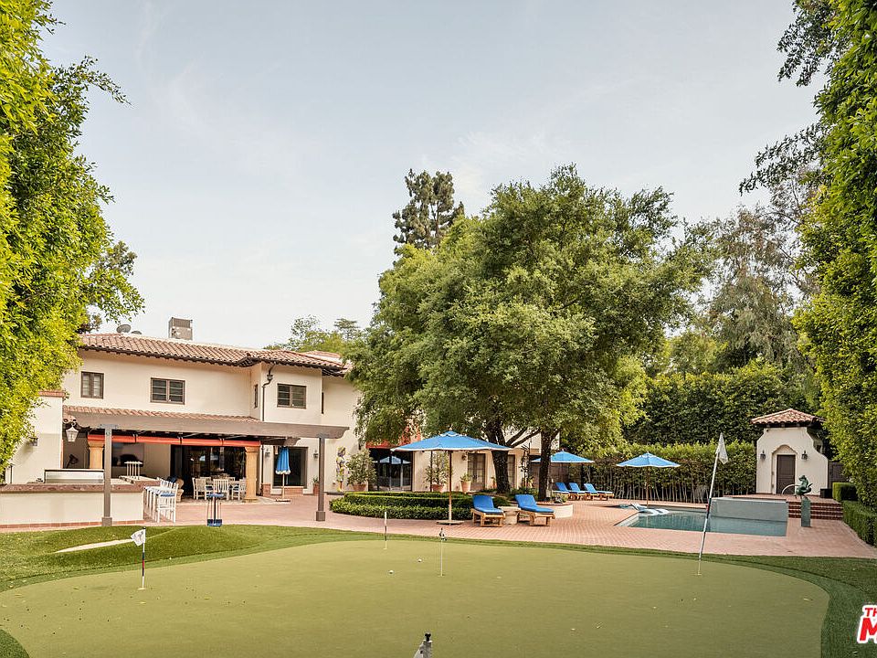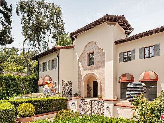 An Estate Fit for a Titan of Industry. Set high above the street behind incredible secure gates, this commanding European-style "Armani Casa masterpiece estate" exudes unmatched curb appeal and stature. A bold architectural statement, built for those who live and entertain on a grand scale. A sanctuary of sophistication using only the finest materials. Every detail was considered, every finish elevated. The scale is unmatched, from expanded interior walkways and massive walls perfect for large-scale art collections, to sculpture gardens, and majestic oak trees anchoring the rear yard with timeless beauty and shade. The home also features a gym rivaling top-tier fitness clubs, a travertine spa and massage room, and an industry-caliber movie theater built to impress. Built new in 2009 and reimagined by some of LA's most sought after designers, the estate features a dramatic formal entryway adorned with custom French Maison-G stone flooring throughout. Brazilian rosewood flooring with custom inlays, rich wainscoting, and elegant light accents. Marvel at the craftsmanship of the Italian & French stone/marble, herringbone wood floors, and exquisite lacquer finished hand-carved staircase and custom steel and glass doors with anti-break film for added security. A sprawling 2000 sf subterranean garage is ideal for a car collector. The elevator provides convenient access to all levels. The kitchen is a culinary haven, centered around a generous island with breakfast bar and outfitted with a full suite of top-tier appliances. Hidden staircases offer discreet access between the media room and the upstairs office, allowing a media executive to move seamlessly between work and leisure throughout the day. The lower level includes a private guest suite, full gym, spa, and massage retreat. Upstairs are four additional en-suite bedrooms, along with a spacious executive-style en-suite office with treetop views, offering the perfect blend of luxury and function. This home delivers Brentwood Park and Hancock Park quality in the heart of Royal Oaks, one of the Valley's most coveted neighborhoods. With grand entertaining spaces, museum-worthy walls for art, and irreplaceable outdoor features, this estate is in a league of its own and a rare opportunity to own a residence of true substance and scale.