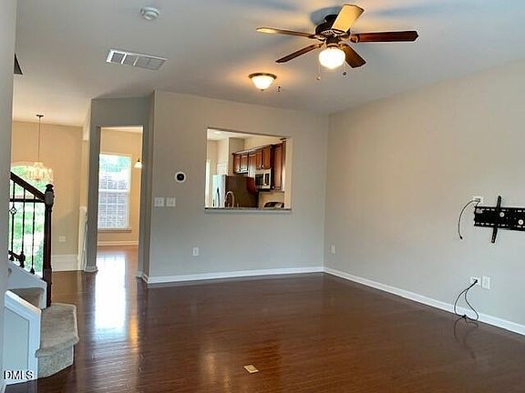 Location, Location, Location! Desirable neighborhood that's just a short walk to Cary Crossroads...which offers excellent shopping, restaurants and entertainment! Covered front porch invites you into a home with many special features throughout: stainless steel appliances, gas range, wood floors, high ceilings, granite countertops, wrought iron spindles, walk in closets, 2 car garage and a back deck to just relax, grill out and catch some rays. All three bedrooms have ensuite baths., and there's storage under the stairs and in the attic. Great property!!