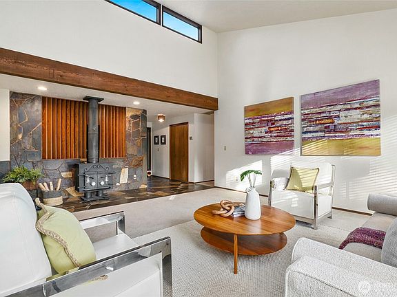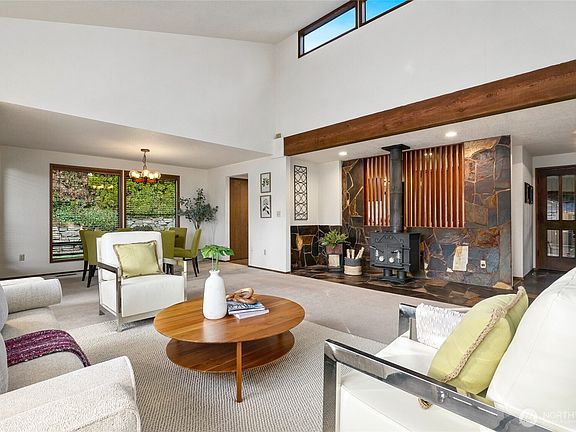 Situated in a quiet neighborhood ideally located near Mill Creek Town Center & Alderwood Mall with easy access to I-5/I-405 and SR-527. Desirable, custom rambler on private, corner lot in cul-de-sac. Formal slate entry opens to sunny living room with vaulted ceiling and wall of windows. Territorial views. Centrally located yet unintrusive wood burning fireplace effectively heats entire home. Spacious kitchen with center island and breakfast bar opens to family room. Slider to fully fenced, level backyard - perfect for outdoor activities. Primary bedroom with 3/4 bathroom. Two additional good sized bedrooms. Full guest bath. 2-car garage with storage. Heat pump provides AC in the summer and warmth in the cooler months. Wood blinds throughout