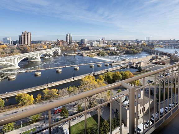 Experience captivating riverfront views from your private balcony, stretching up and down the majestic Mississippi River. This gracious 1-bedroom home offers 860 sq ft of open-concept living, featuring a center island kitchen with stainless steel appliances and a beautifully upgraded full bath with travertine tile. Enjoy the convenience of a newer in-unit top-load washer and dryer, plus a dedicated parking stall and nearby storage. Celebrate 4th of July and Aquatennial fireworks in style. Your RiverWest balcony is the envy of the city! Outdoor amenities include a dog park, pool deck, and BBQ area, while indoors you'll find a fitness center, hot tub, sauna, and community room with kitchen. Located steps from coffee shops, restaurants, grocery stores, trails, theaters, and sports venues, this is the perfect landing spot to refresh and recharge before taking on the world tomorrow.