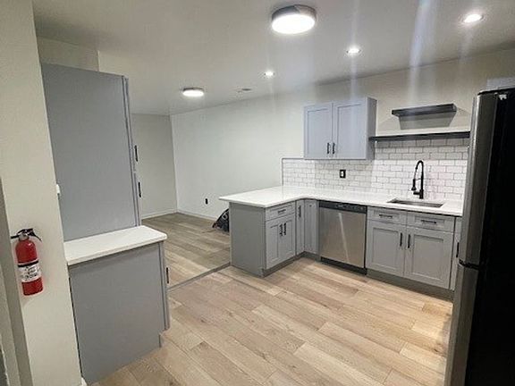 Newly renovated 1 Bedroom 1 Bath located in downtown Bound Brook. The apartment features a brand new kitchen with stainless steel appliances, new gray shaker cabinets, quartz countertops, a pantry, and eat-in breakfast bar/Counter. Luxury vinyl flooring throughout, LED lighting, and black modern fixtures. Renovated bathroom with updated flooring, tiled shower.