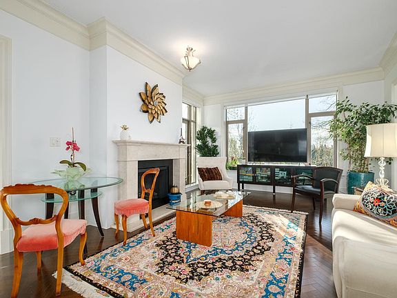 Embrace refined living at West Vancouver's Water's Edge. This SE corner unit showcases 2 bedrooms, a den, and 2 baths, basking in natural light. Crafted by Robert Stern, revels in herringbone floors and a Chefs kitchen with Miele appliances, including a sub-zero fridge. Enjoy sweeping river and park vistas from every room and terrace. Luxurious amenities include concierge services, a gym, and a sauna. Serene views, 1Oft ceilings, granite counters, and a lavish ensuite complete the picture. Rental and pet-friendly, with quick possession options.