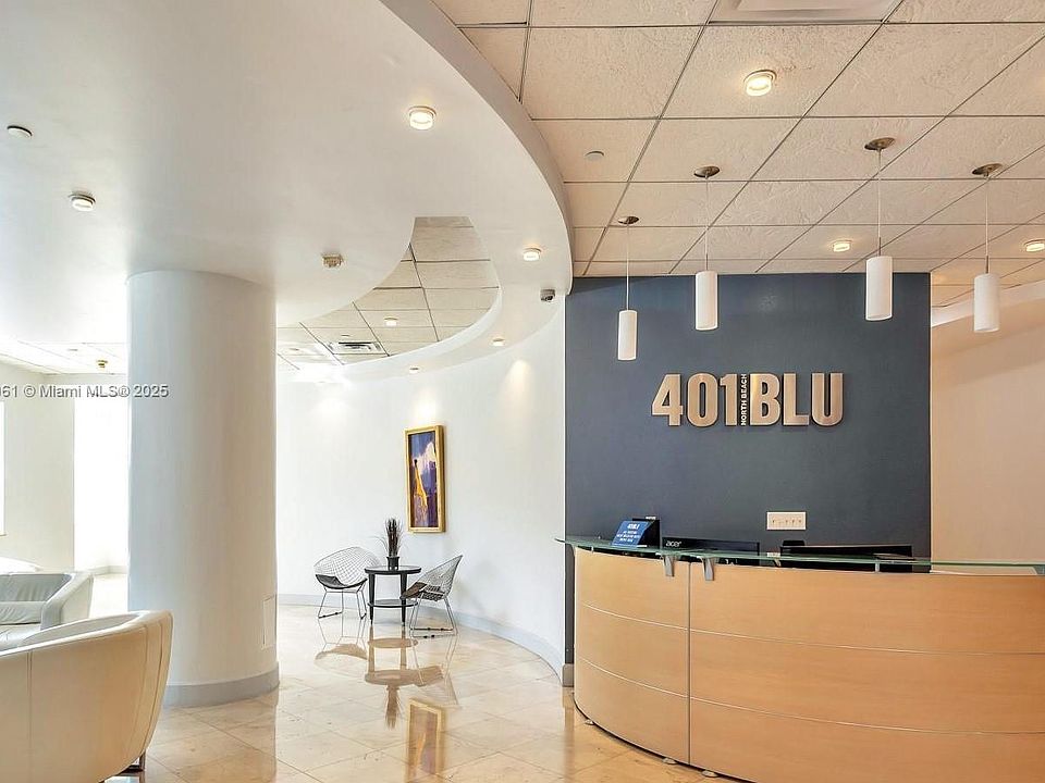 Prime living awaits at 401Blu! Nestled in the heart of North Beach, this residence is mere steps from Town Center, Publix, the beach, and premium shopping and dining destinations. Tile flooring throughout, kitchen with granite countertops and stainless steel appliances, a spacious bathroom with an extended vanity cabinet and ample storage, and a private balcony. Enjoy the secured lobby entrance with a attendant, gym, rooftop pool, and other amenities at 401Blu. Rented until 8/31/2026. Great Tenant paying $2,425.