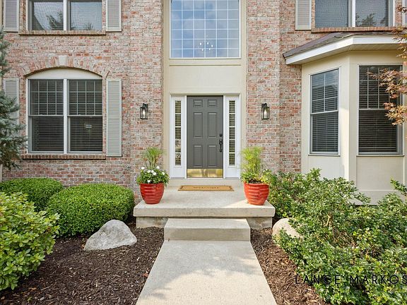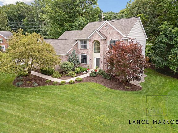 Step inside to discover a spacious and thoughtfully designed interior. The open-concept living area features real maple flooring throughout and a cozy fireplace, ideal for chilly Michigan evenings, and large windows that fill the space with natural light. The contemporary kitchen is a chef's delight, complete with stainless steel appliances, granite countertops, and a generous island - perfect for preparing meals and entertaining guests. The master suite is a private retreat, complete with a luxurious en-suite bathroom featuring dual vanities, a soaking tub, and a separate shower.