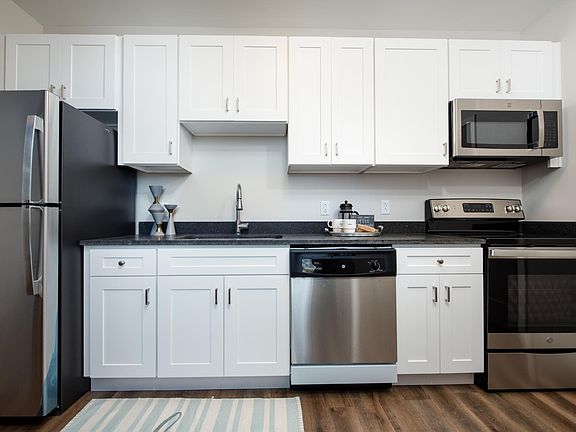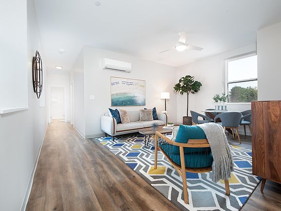 In-unit laundry. On-site parking. Private garages and private storage closets available. EV charging station. Pet friendly. No smoking.