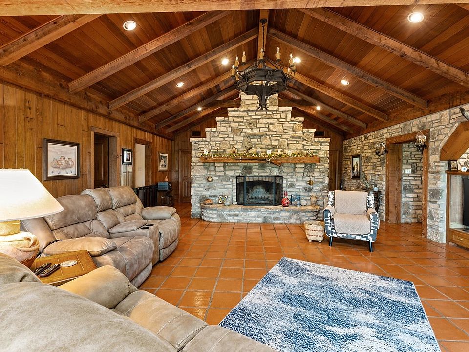 Too good to be true. This is a western rustic home with 3 beds and 3 full baths away from the noise of the world. 41 acres of gorgeous coastal Bermuda, fenced and cross fenced. Pipe fencing done right. The home features vaulted cedar ceilings with beautiful beams, 12 foot floor to ceiling fireplace in living and primary bedroom. Huge office and master bedroom with his and her closets. Beautiful oversized kitchen will accommodate all your guests. Extra large laundry room right off the kitchen. 3 car garage, wrap around wood decking and a wall of windows for that panoramic view out back. 2 septic tanks, propane for cooking, water softener and a deep well. Roof top deck over looks a beautiful 10 stall horse barn, tac, and a huge hangar to store hay, feed, and equipment with yet another barn. Very large double sized office with beautiful wood ceilings as well. Bring your horses, bring your cows and the dogs. Plenty of room to roam here. 1 year old mobile home for helper conveys.