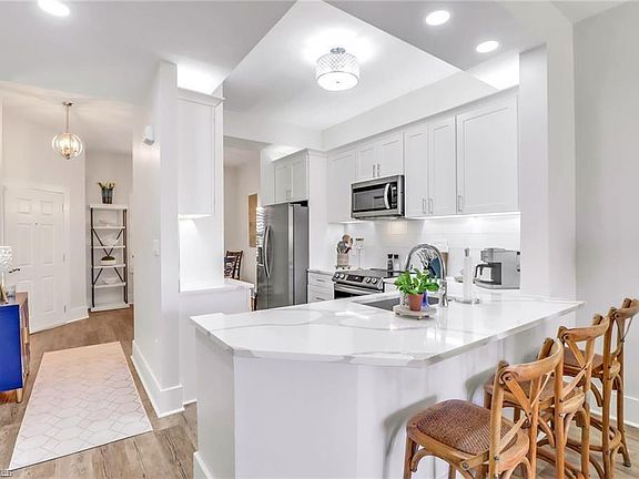 Experience elegance and style in this completely renovated, professionally decorated residence in Bayfront Place. This penthouse features two bedrooms and two bathrooms in its 1,223 square feet and is located adjacent to the community amenitiesBayfront offers a lifestyle of convenience, excitement, and relaxation, perfect for those seeking the best of Naples. An array of luxurious amenities are available on-site including 2 pools, 2 spas, a fitness center, grills, pickleball, tennis, and many outdoor spaces. Bayfront also is home to a selection of delicious restaurants, a unique waterfront Cabana bar, and an adventure shop offering boat rentals and outdoor excursions. Located just minutes from the heart of Naples, you'll have easy access to vibrant Fifth Avenue, the charming Third Street South area, and historic Tin City. Visit the iconic Naples Pier, relax on the sandy beaches of the Gulf of Mexico, or catch a performance at the new Gulfshore Playhouse. Enjoy tranquil moments at Baker Park and discover more unique shopping and dining experiences, all within a short distance.