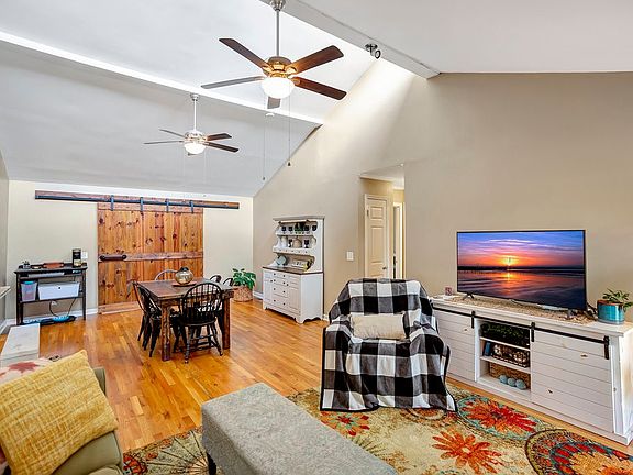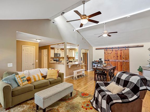 - Ceiling Fan(s), Cathedral Ceiling(s), Fireplace, Laminate Countertop, Bath in Primary Bedroom, Main Level Primary, Walk-In Closet(s), Window Treatments, Breakfast Area