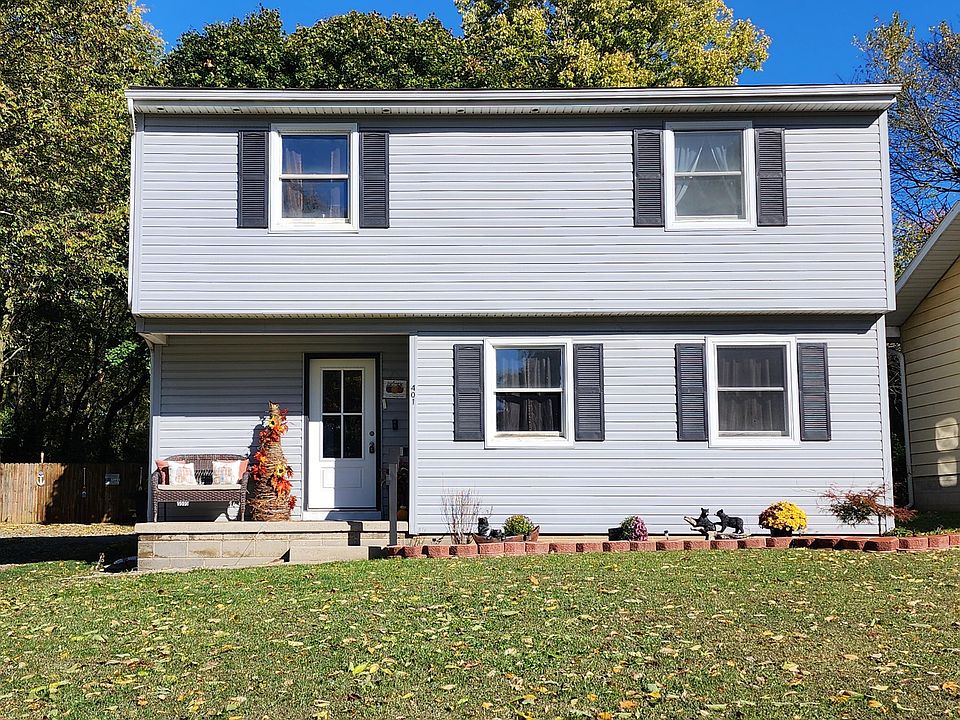 Cozy and move in ready 4-5 Bedroom home with 1.5 bathrooms and a 2 car attached garage located on a corner lot! Spacious home with lots of storage and privacy! Main level offers: family room, kitchen, bedroom, half bath, utility room, extra room that can be used as a bedroom or office. Second level offers 3 bedrooms and a full bathroom. Updates include: new flooring and paint throughout the house, updated bathrooms (sink, shower, mirror, lighting, toilet, flooring), roof (2018), washer & dryer (2016), refrigerator (2018), microwave (2021), pellet stove (2017) and more! Half bathroom can be converted to a full bath (water hook up accessible). Home is located 2 blocks from Bellefontaine High School, Blue Jacket park and the fairgrounds!