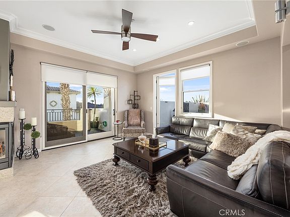Motivated Seller! Gated enclave of Pacifica at Newport Plaza, a 32 unit Mediterranean inspired condo community just a bike ride to the beach and within walking distance of Triangle Square, Orange County’s premier dining and entertainment destination. This bright and spacious 2 bedroom, 2.5 bath, top floor corner unit is situated in the absolute best location within the complex, featuring high ceilings, large dual pane windows and an expansive rooftop deck, with two additional private patio balconies. Rich dark wood kitchen cabinets are a gorgeous contrast to the granite countertops and backsplash with a stainless steel Sub Zero refrigerator and Wolf gas range. Designer style finishes tastefully chosen to include natural stone flooring, crown and base molding, recessed lighting, and a two-sided fireplace. The living room, half bathroom, kitchen and dining area are conveniently located at the entry level with bedrooms on the lower level for a private retreat. The expansive master suite features a large walk-in closet, dual sink vanity, soaking tub and separate shower, with a large second en suite bedroom and bath. Additional high-end upgrades include pre-wired surround sound, CAT-5 Ethernet and a Nest thermostat. Gated individual parking garage and ample guest parking, along with access to the neighboring Blue Sol Community pool & spa, are equally attractive features of this special home located perfectly in the heart of Orange County.